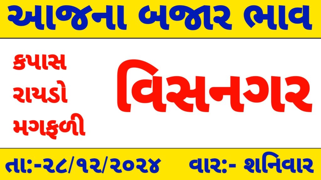 વિસનગર માર્કેટ યાર્ડ /આજના બજાર ભાવ /Visnagar apmc rate /kapas bhav / 28-12-2024 ના વિસનગર માર્કેટ યાર્ડ ના ભાવ