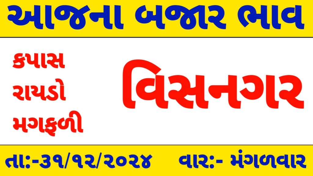 વિસનગર માર્કેટ યાર્ડ /આજના બજાર ભાવ /Visnagar apmc rate /kapas bhav / 31-12-2024 ના વિસનગર માર્કેટ યાર્ડ ના ભાવ