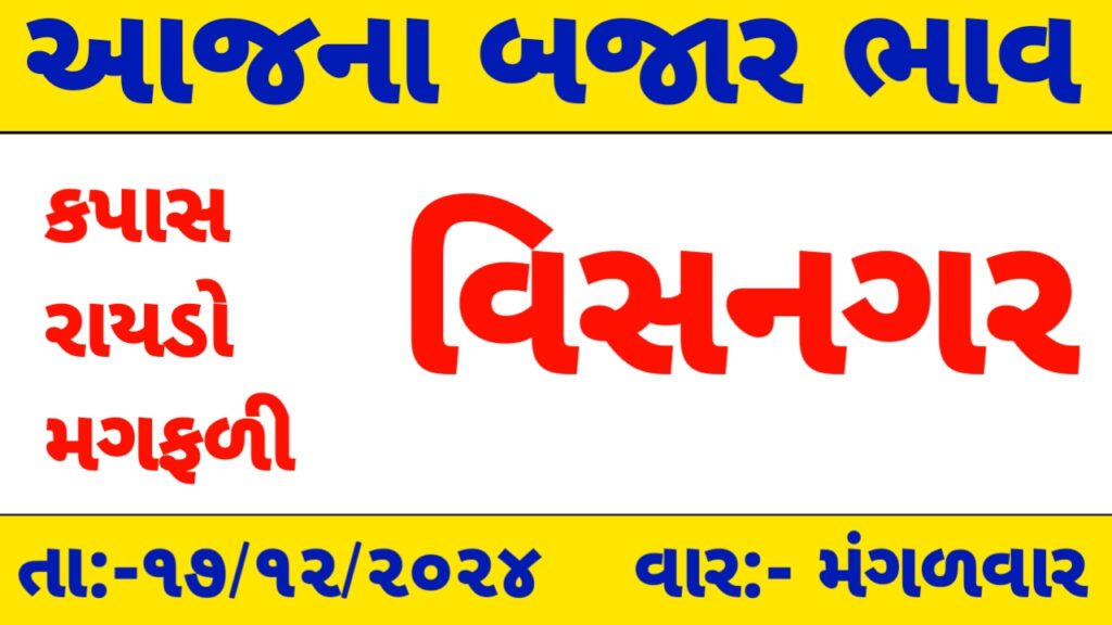 વિસનગર માર્કેટ યાર્ડ /આજના બજાર ભાવ /Visnagar apmc rate /kapas bhav / 17-12-2024 ના વિસનગર માર્કેટ યાર્ડ ના ભાવ