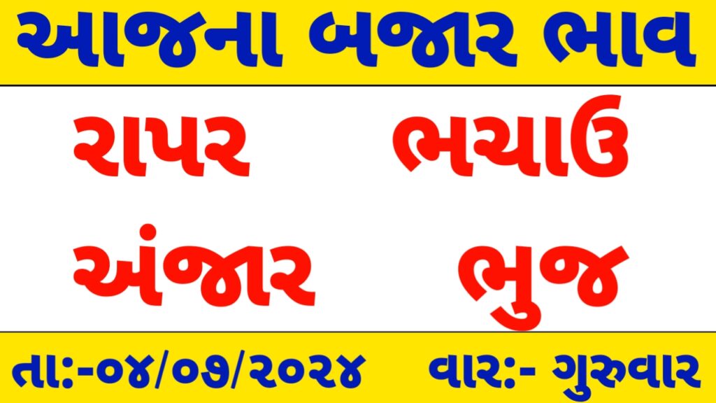 રાપર ,અંજાર ,ભચાઉ અને ભુજ માર્કેટ યાર્ડ /આજના બજાર ભાવ / apmc rate / 04-07-2024 ના માર્કેટ યાર્ડ ના ભાવ