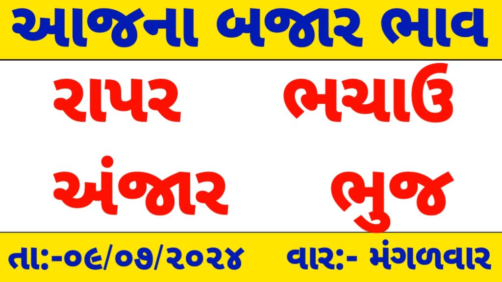 રાપર ,અંજાર ,ભચાઉ અને ભુજ માર્કેટ યાર્ડ /આજના બજાર ભાવ / apmc rate / 09-07-2024 ના માર્કેટ યાર્ડ ના ભાવ
