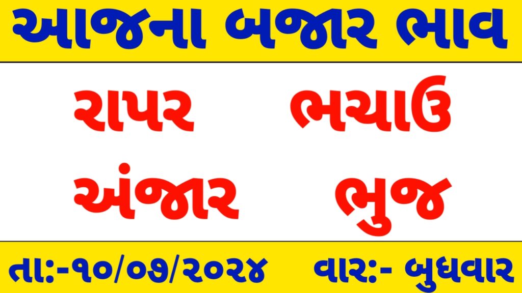 રાપર ,અંજાર ,ભચાઉ અને ભુજ માર્કેટ યાર્ડ /આજના બજાર ભાવ / apmc rate / 10-07-2024 ના માર્કેટ યાર્ડ ના ભાવ