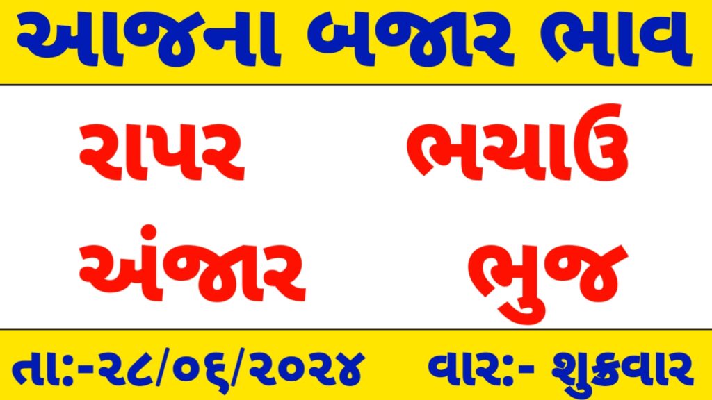 રાપર ,અંજાર ,ભચાઉ અને ભુજ માર્કેટ યાર્ડ /આજના બજાર ભાવ / apmc rate / 28-06-2024 ના માર્કેટ યાર્ડ ના ભાવ