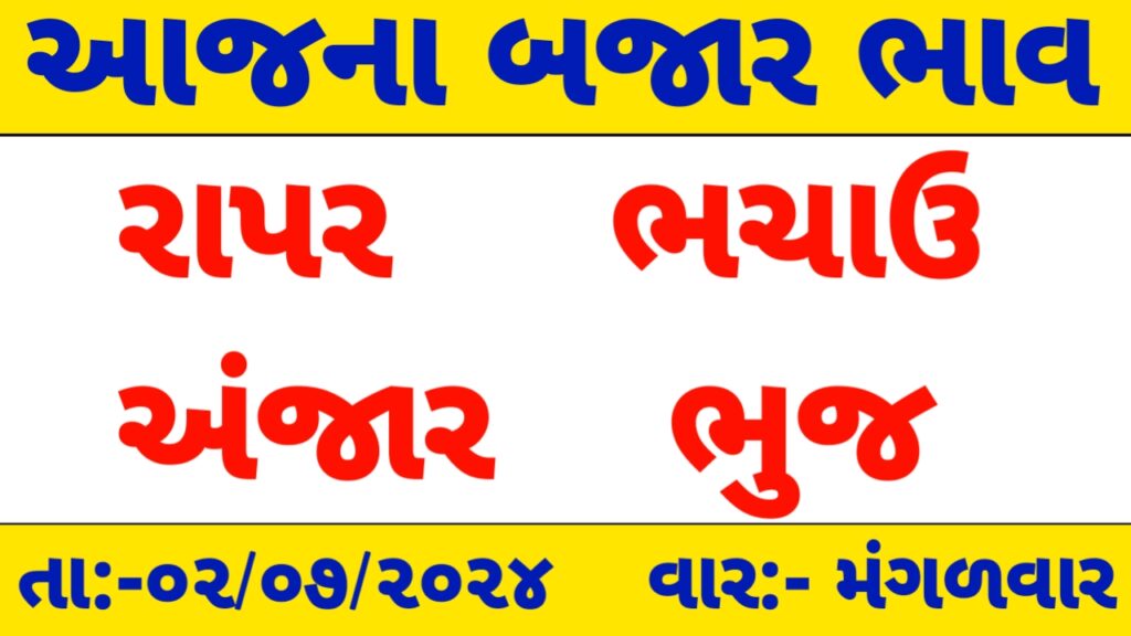 રાપર ,અંજાર ,ભચાઉ અને ભુજ માર્કેટ યાર્ડ /આજના બજાર ભાવ / apmc rate / 02-07-2024 ના માર્કેટ યાર્ડ ના ભાવ