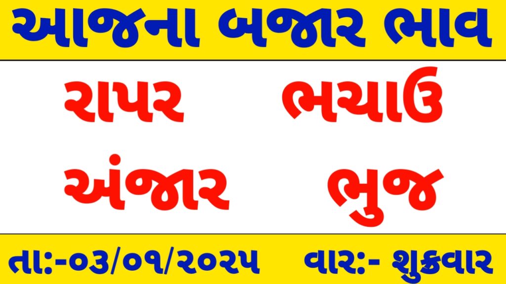 રાપર ,અંજાર ,ભચાઉ અને ભુજ માર્કેટ યાર્ડ /આજના બજાર ભાવ / apmc rate / 03-01-2025 ના માર્કેટ યાર્ડ ના ભાવ