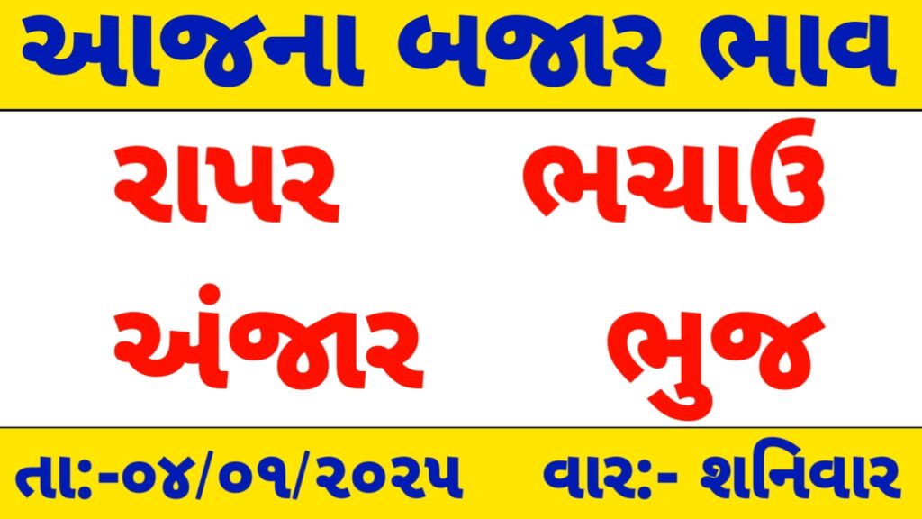 રાપર ,અંજાર ,ભચાઉ અને ભુજ માર્કેટ યાર્ડ /આજના બજાર ભાવ / apmc rate / 04-01-2025 ના માર્કેટ યાર્ડ ના ભાવ રાપર માર્કેટ યાર્ડ આજે જીરુંના ભાવ 4500…