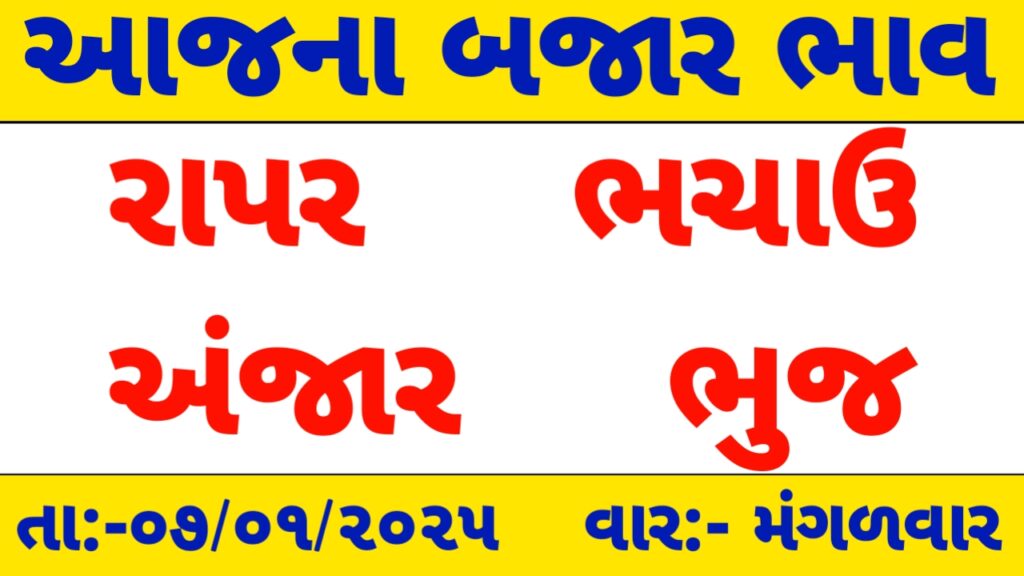 રાપર ,અંજાર ,ભચાઉ અને ભુજ માર્કેટ યાર્ડ /આજના બજાર ભાવ / apmc rate / 07-01-2025 ના માર્કેટ યાર્ડ ના ભાવ