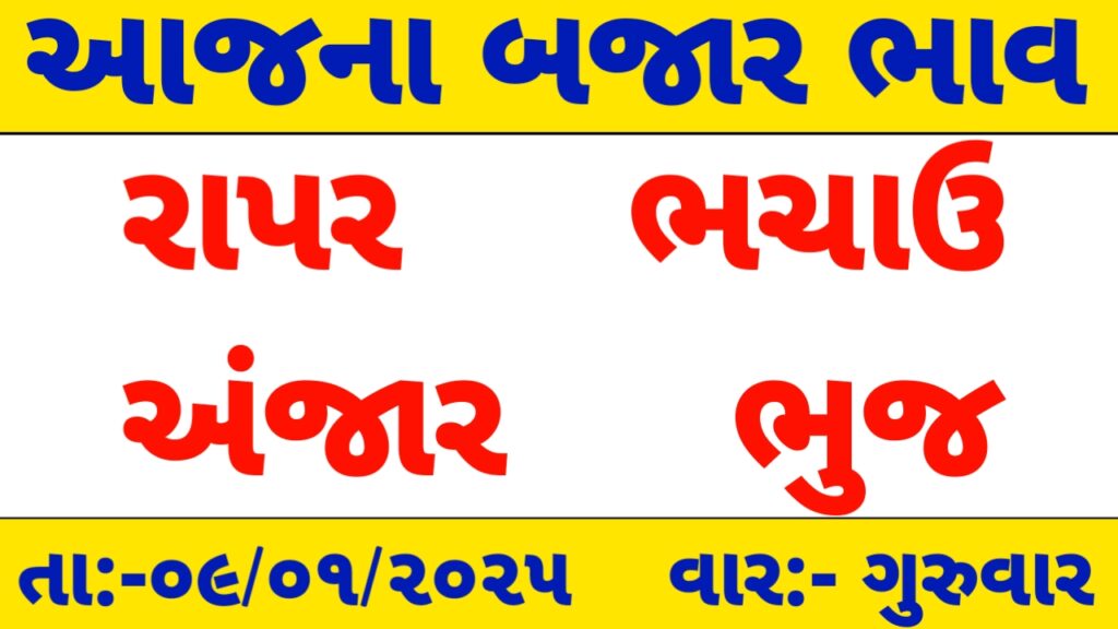 રાપર ,અંજાર ,ભચાઉ અને ભુજ માર્કેટ યાર્ડ /આજના બજાર ભાવ / apmc rate / 09-01-2025 ના માર્કેટ યાર્ડ ના ભાવ