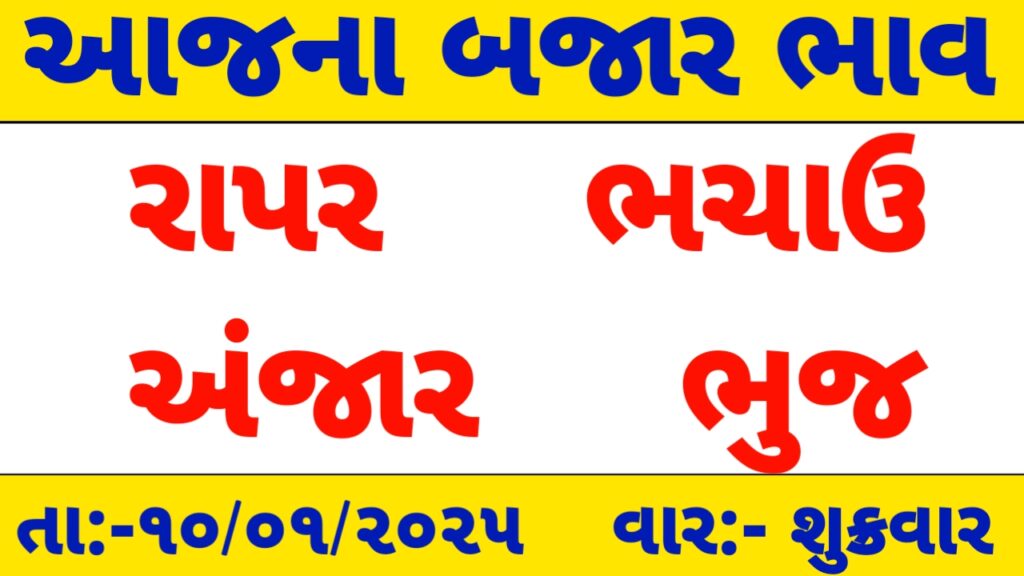 રાપર ,અંજાર ,ભચાઉ અને ભુજ માર્કેટ યાર્ડ /આજના બજાર ભાવ / apmc rate / 10-01-2025 ના માર્કેટ યાર્ડ ના ભાવ