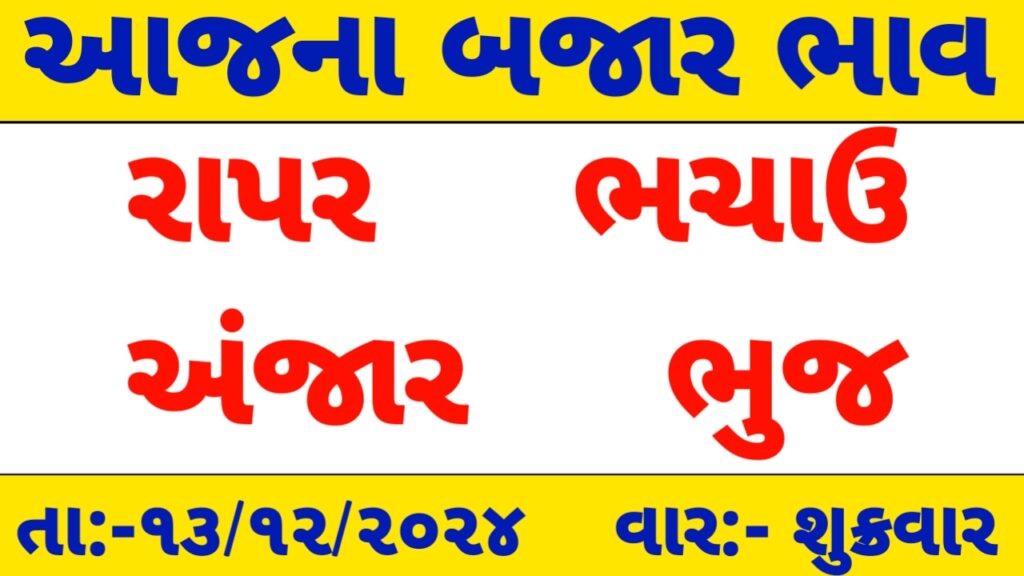 રાપર ,અંજાર ,ભચાઉ અને ભુજ માર્કેટ યાર્ડ /આજના બજાર ભાવ / apmc rate / 13-12-2024 ના માર્કેટ યાર્ડ ના ભાવ