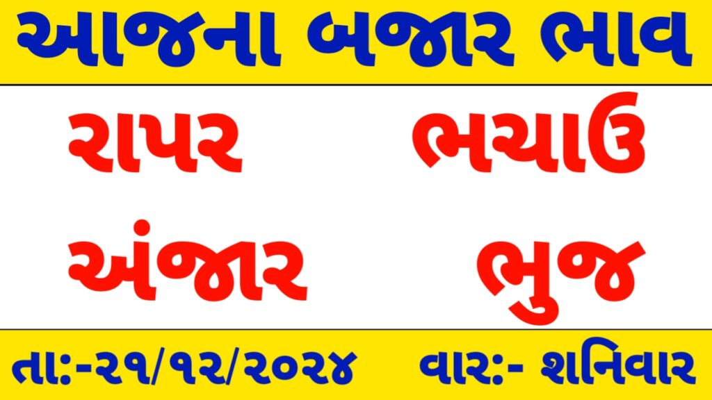 રાપર ,અંજાર ,ભચાઉ અને ભુજ માર્કેટ યાર્ડ /આજના બજાર ભાવ / apmc rate / 21-12-2024 ના માર્કેટ યાર્ડ ના ભાવ